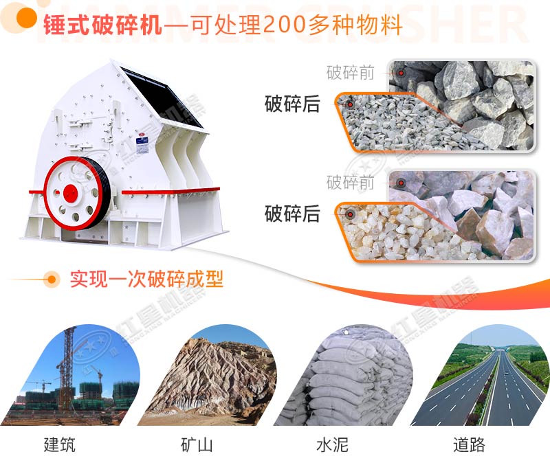 适用于多种中等硬度物料,比如石灰石、煤、焦炭等抗压强度低于200Mpa的物料,广泛应用于矿山、冶炼、建材、公路、铁路、水利等众多行业。